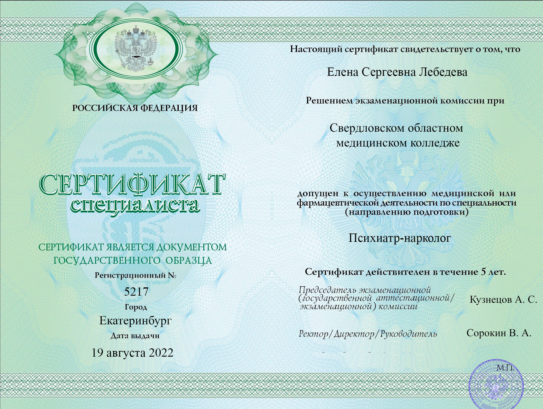 Елена Сергеевна Лебедева врач нарколог клиники доктора Стукаловой в Аркадаке